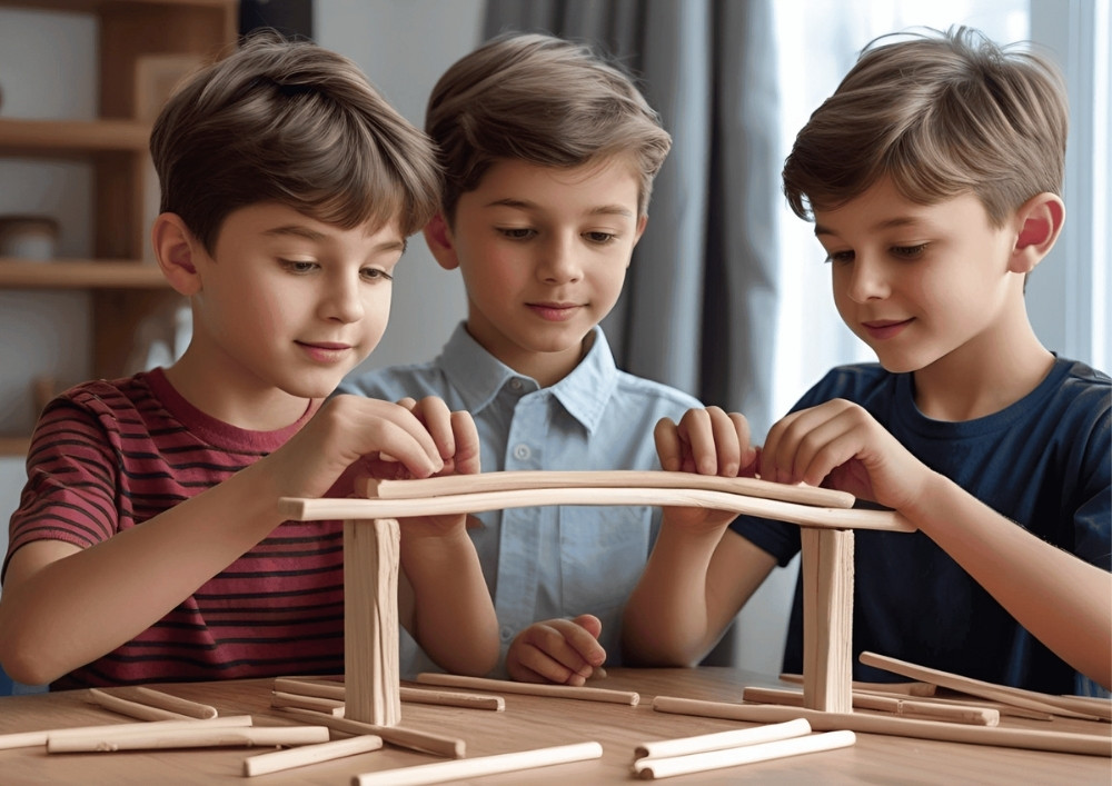 Kinder lernen spielerisch Statik und bauen stabile Brücken und Türme, die Gewicht aushalten.